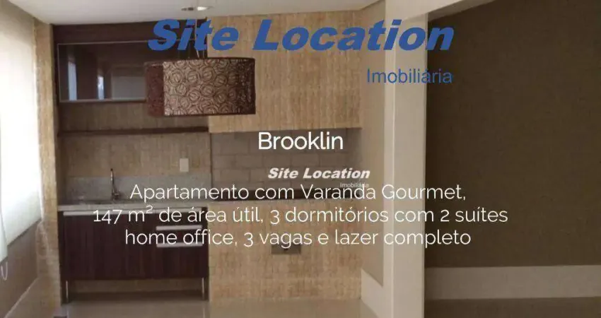 Apto com living integrado à varanda ;esta com churrasqueira,escritorio totalmente montado ,3 suites ;sendo que a do casal com closet ampliado e terraço.