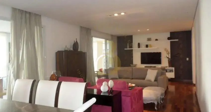 Apartamento face norte, com vista para a copas das árvores. Espaçoso living para três ambientes integrado ao terraço gourmet, lavabo, 04 dormitórios, sendo 02 suítes, cozinha em tons claros e ótimos armários, área de serviço, dependências de empregada e 04 vagas de garagem. Dispõe de fino acabamento e ar condicionado em todos ambientes. CRECI: 181587-F