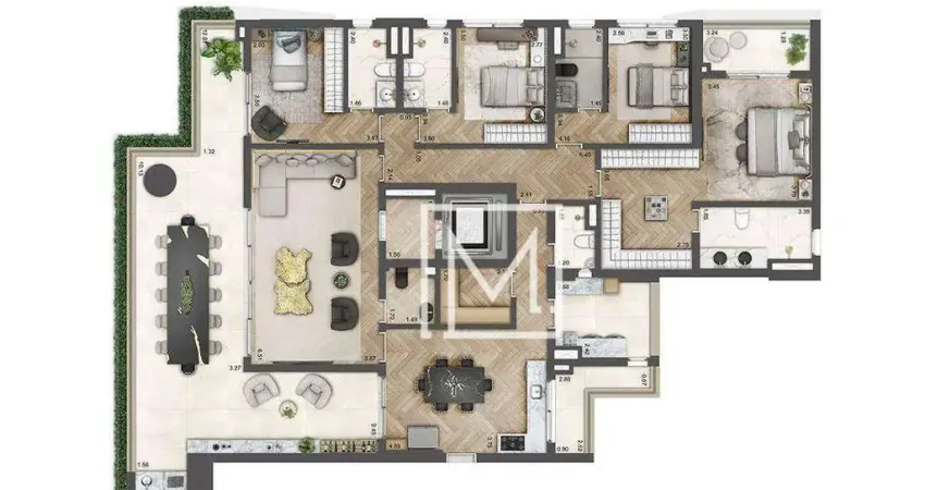 Plantas de 3 ou 4 suítes, 3 vagas de garagem, 246mts