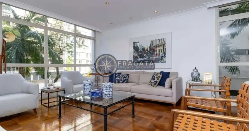 Este espaçoso apartamento em Higienópolis foi completamente reformado para oferecer o máximo de conforto, funcionalidade e elegância. Com 270m² de área útil, o imóvel dispõe de quatro dormitórios, sendo uma suíte master com closet e persianas automatizadas, além de duas vagas de garagem.