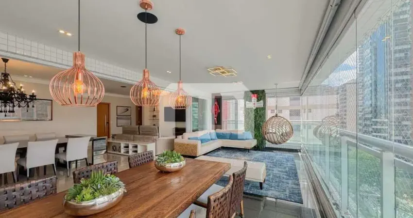 O living ampliado conta com sala para três ambientes integrados, proporcionando amplitude e conforto, além de um terraço gourmet ideal para receber convidados. A cozinha é ampla e bem equipada, e a área de serviço conta com banheiro de empregada e espaço técnico. Apartamento totalmente decorado, com ar-condicionado instalado e fechamento de vidro em todos os terraços, garantindo conforto térmico e acústico. Há ainda um lavabo bem posicionado e acabamentos de alto padrão em todos os cômodos.
