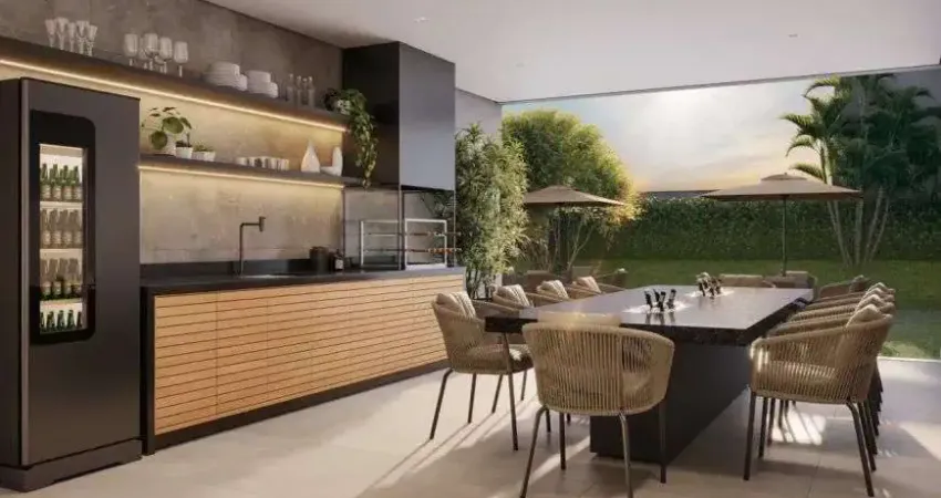Possui área de fitness, espaço gourmet, área verde de jardim, área de brinquedo para as crianças, salão de festas.