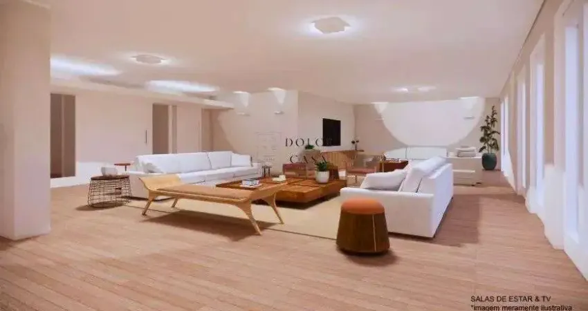 Na ala íntima, estão 4 amplos dormitórios, sendo 3 suítes, todas com armários e banheiros em mármore; a suíte master ainda conta com closet, cuba dupla e hidromassagem. Varandas também nos quartos, que trazem toda a luminosidade para dentro de casa.