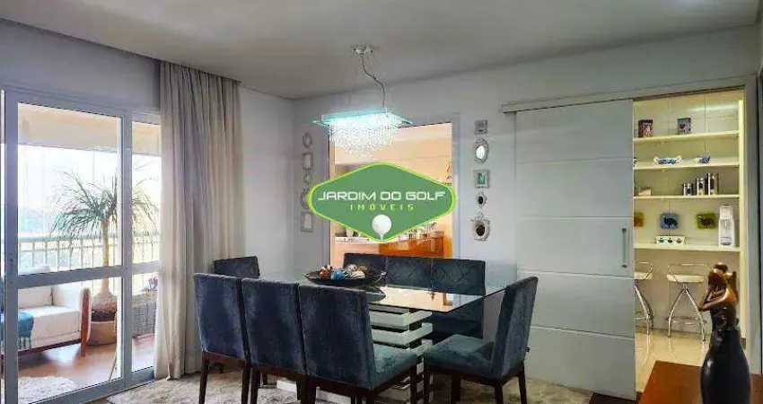 Este lindo apartamento situa-se em andar alto e possui uma maravilhosa vista livre para o Golf Club e varanda gourmet equipada com churrasqueira a carvão. Possui piso em porcelanato, fechamento em vidro e cortinas com telas solares.