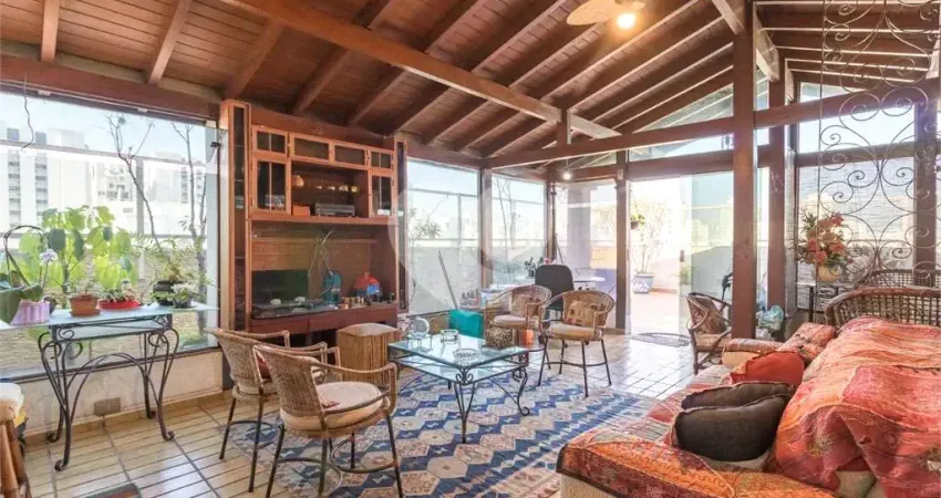 Cobertura diferenciada em Moema com 264 m² de área (link removido) pavimento inferior, com 164,78 m², com sala ampla em três ambientes com ar-condicionado, totalmente integrada a terraços panorâmicos que contornam todo o andar. O espaço dispõe ainda de lavabo, 4 dormitórios, sendo 1 suíte com closet, cozinha e área de serviço com armários planejados, além de dependência de empregada (link removido) pavimento superior, com 78,36 m² de área construída em estilo chalé, encontra-se um ambiente exclusivo e aconchegante, ideal para lazer e convivência. O espaço oferece sala em três ambientes com ar-condicionado, lareira e bar com armários, lavabo, depósito e uma ampla área externa extremamente confortável, com churrasqueira e chuveiro, perfeita para aproveitar o sol e momentos especiais, tudo isso com uma vista (link removido) no pavimento uma área aberta.