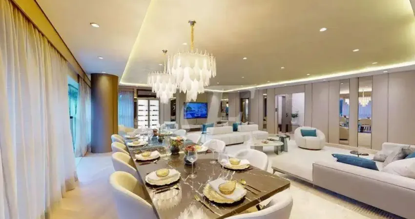 Apartamento para vender com 251 metros quadrados de área privativa, sala três ambientes, quatro suítes com acabamentos de alta qualidade e espaços bem distribuídos, cada ambiente é acolhedor e funcional, com janelas amplas permitindo muita luz natural e ótima ventilação.