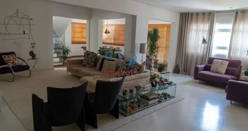 Cobertura de alto padrão com 400 m² de área privativa, distribuída de forma funcional e elegante. O imóvel conta com 4 suítes, sendo uma suíte master com closet e banheiro privativos, além de escritório. Dispõe ainda de dependência completa para funcionários, com 2 dormitórios e banheiro, 5 vagas de garagem, sendo 1 vaga fechada, além de depósito privativo. No pavimento superior, a área de lazer é completa, com piscina, sauna, SPA e churrasqueira coberta, proporcionando conforto e privacidade para momentos de lazer e convivência.