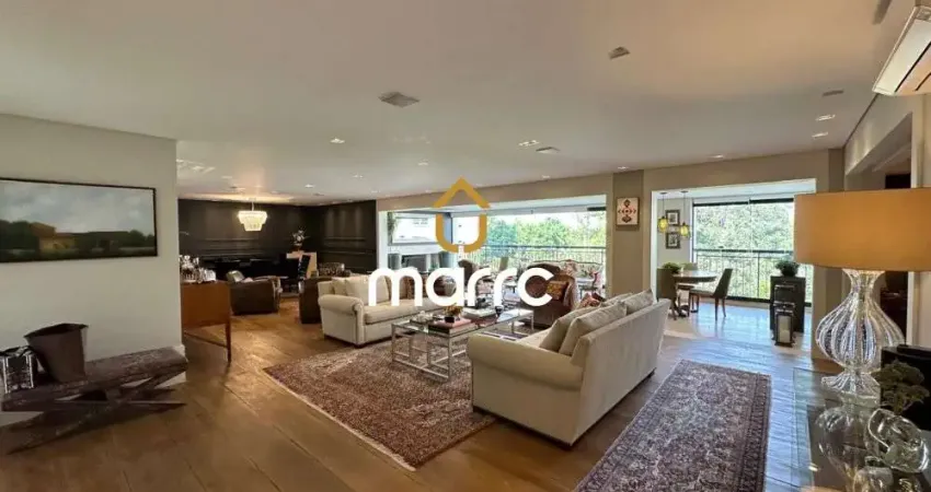 Apartamento à venda com área de 410 metros quadrados, possui 4 dormitórios (sendo 3 suítes), lavabo e 5 vagas de garagem.