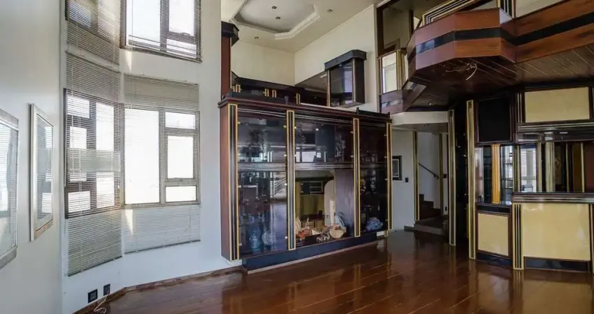 Ref: CO0066 COBERTURA TRIPLEX ALTÍSSIMO PADRÃO COM EXCELENTE POTENCIAL PARA REFORMA EM FRENTE A GRADED SCHOOL!!! Cobertura tríplex, com elevador interno que atende todos os pavimentos, com vista linda para onde quer que se olhe, ótima planta, ambientes amplos, iluminados e bem distribuídos!! No pavimento principal: living de entrada com pé direito duplo, sala de estar para 4 ambientes com lareira, jantar, lavabo, copa, cozinha, despensa, área de serviço, 2 dependências para empregados e escadas de acesso (social e de serviço), para os demais pavimentos.2° pavimento: Mezanino, sala íntima, sala de jogos, roupeiro e 04 suítes, suíte máster com hidromassagem e closet enormes.3° pavimento: Espaço perfeito para encontrar os amigos, com sala de convivência, espaço para área gourmet com cozinha de apoio, sauna, depósito, vestiário e piscina! Agende sua visita e venha conhecer!