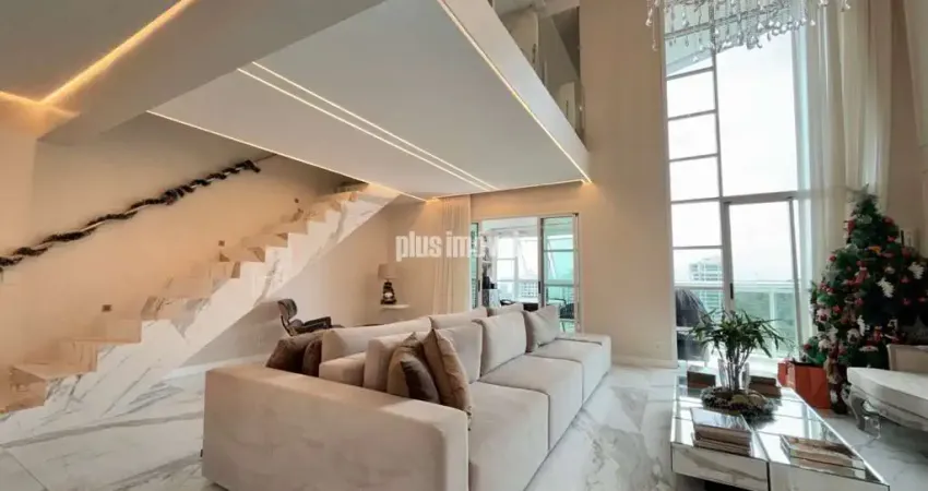 Seu pé direito de 5m de altura, living voltado para varanda gourmet, com vista deslumbrante.