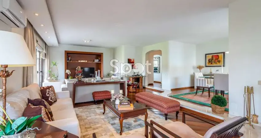 01/Andar - Excelente planta com 243m² de área útil dispondo de ampla sala de estar com lareira e varanda, sala de jantar, sala de TV, cozinha moderna, sala de almoço, lavabo, 4 dormitórios sendo 2 suítes, 3 vagas + depósito. 03 vagas. Lazer com piscina, salão de festas e sauna!