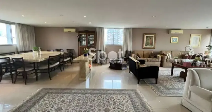Em andar alto, o imóvel possui living para 3 ambientes e vista privilegiada do skyline do Jardim Europa e Cidade Jardim. Conta com ambientes amplos, confortáveis e iluminados, com ar-condicionado, piso frio e em madeira. São quatro suítes, sendo a master com closet e banheiro com duas cubas. Dispõe de copa e cozinha, roupeiro, despensa e área de serviços completa. São 3 vagas de garagem.