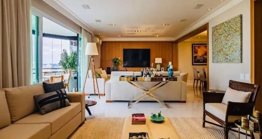 Com 350M², 4 suites sendo 1 master, sala para 3 ambientes, terraço com excelente vista, ampla cozinha com planejados, área de serviço com dependência para funcionarios + 3 vagas de garagem. O imóvel conta com ar-condicionado, moveis planejados em todos os ambientes, piso em madeira nos dormitórios e porcelanato na sala, cozinha e terraço.