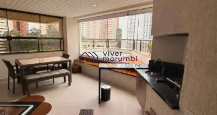 Apartamento de alto padrão no Morumbi, com 4 quartos, 4 suítes amplas com varanda, varanda principal integrada à sala com jacuzzi e churrasqueira privativa.