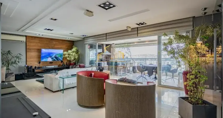 VENDO excelente apartamento MOBILIADO, andar alto, Sol da manhã, na Vila Romana. Sã0 206m², 4 dormitórios - 3 suítes - (o 4° dormitório está montado o escritório, mas pode ser reversível para o original), living para 3 ambientes amplos, lareira, terraço gourmet, armários planejados, materiais nobres nos acabamentos, lavabo, cozinha, lavanderia e dependência de colaboradora com banheiro, 3 vagas de garagem.