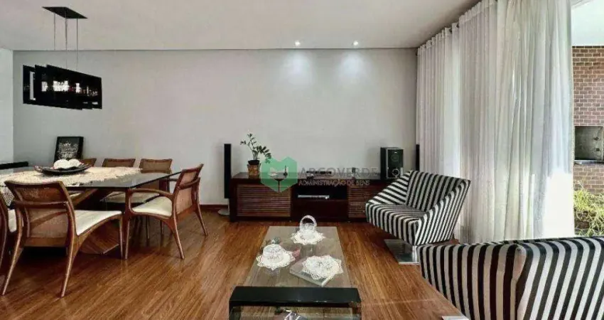 Venha morar no melhor condomínio da região. Apartamento semi mobiliado de 151 m², em andar alto, O apartamento conta com churrasqueira, 4 dormitórios, sendo 1 escritório, 3 suítes, 5 banheiros, sala ampla, cozinha, área de serviço e 3 vagas de garagem. Condomínio com lazer completo, incluindo piscina coberta aquecida, quadra de futebol e quadra poliesportiva, espaço kids, playground. Localização estratégica. com fácil acesso aos mais variados tipos de serviços, como supermercados, restaurantes, lojas, escolas, bancos, academias, farmácias, transporte público, marginais e principais rodovias. Venha conferir pessoalmente!