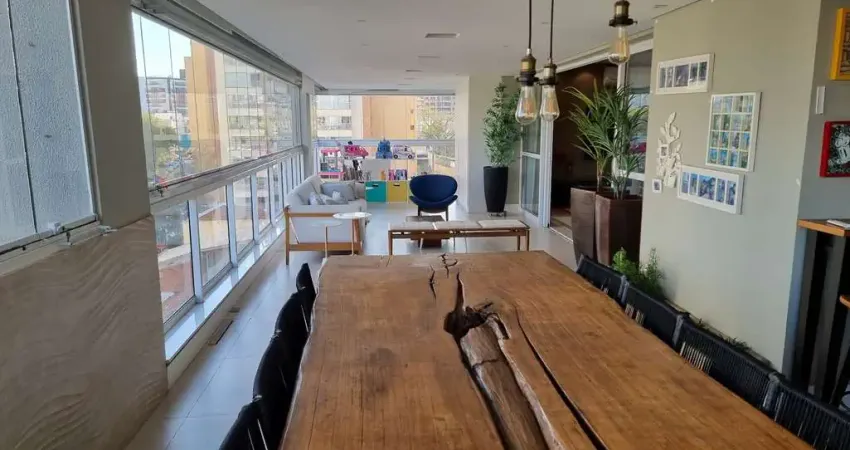 Com 250M², 4 dormitórios sendo 4 suítes todas com piso em madeira, sala para 3 ambientes, terraço Gourmet com churrasqueira, cozinha com planejados, área de serviço com opção de dormitório para funcionários + 4 vagas de garagem.