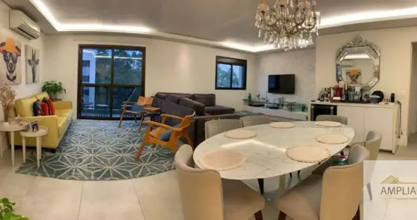 Apartamento de 143m², com 4 dormitórios sendo 3 suítes, closet, deposito, sala 2 ambientes, varanda, 4 banheiros, escritório, cozinha, banheiro, depósito e 2 vagas de garagem.