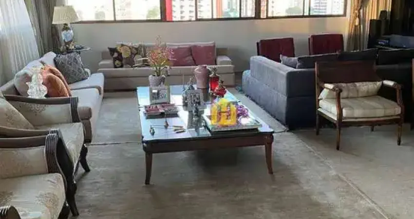 Apartamento com 390 m³, 05 suítes onde 01 foi reformada e é closet, sala ampla para 03 ambientes, banheiro social, cozinha americana com projetados, dependência completa, área de serviço, duas despensas (02 internas e 01 externa) e 06 vagas de garagem.