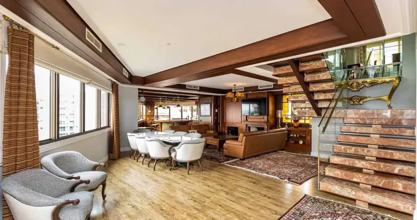 Mobiliado com extremo requinte, mesclando elementos clássicos e modernos, com lustres importados e materiais nobres. Projeto de iluminação e pintura nova. Elevador privativo atendendo os dois pavimentos.
