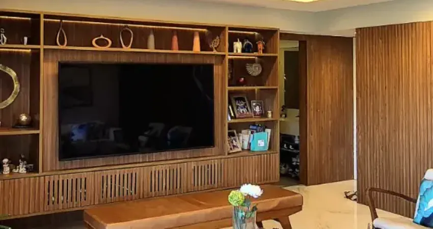 Art Residence 144m² 4/4 sendo 2 suites e 2 demi-suítes, lavabo, varanda integrada à sala ampla, cozinha, área de serviço, banheiro de serviço e três vagas de garagem. Armários planejados instalados