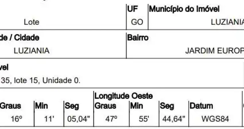 Baixar edital e anexosRUA 01,N. 00 QD 35, LT 15, JARDIM EUROPA - CEP: 72855-851, LUZIANIA - GOIAS.