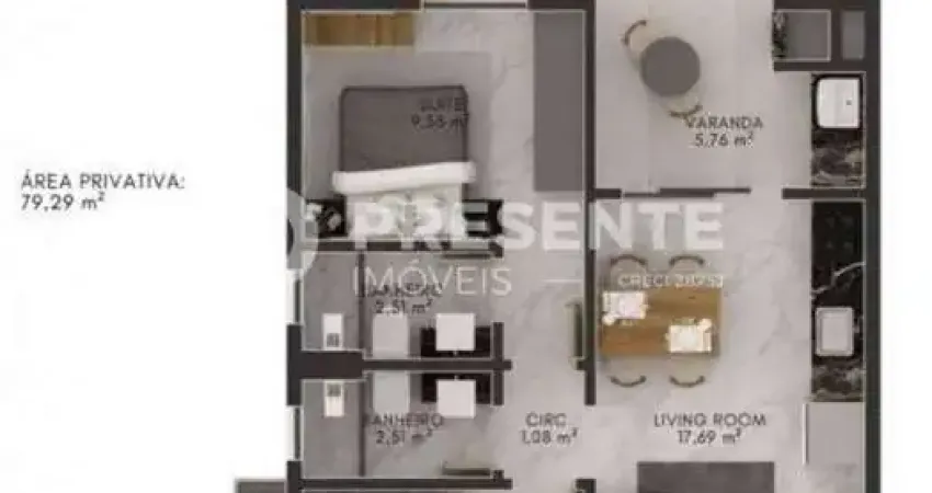 1 suíte + 1 dormitório, banheiro social, sala de estar e jantar integradas, cozinha, varanda gourmet e 1 vaga de garagem.