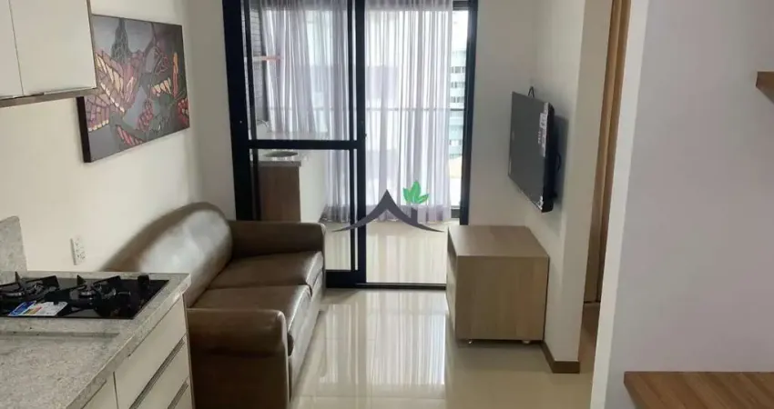 Este apartamento studio com 38 m² de área útil, oferece uma distribuição inteligente com sala, 1 quarto e 1 banheiro social. Com armários planejados, mobiliado, com ar condicionado.