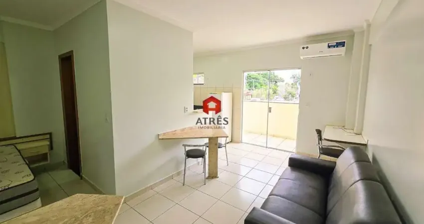 Imóvel mobiliado com cama de casal, geladeira, fogão cooktop, ar condicionado e sofá. Agua, gás, IPTU e condomínio já inclusos no valor do aluguel.