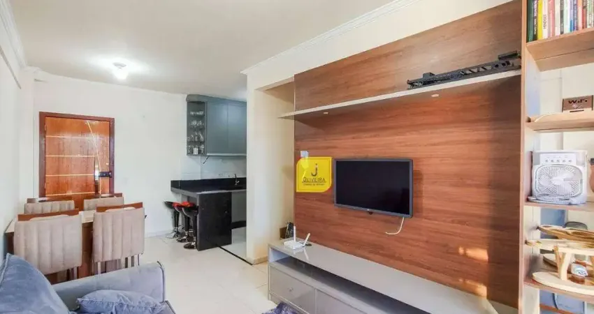 Sala 2 ambientes com sofá, TV (streamings já inclusos) e mesa de jantar