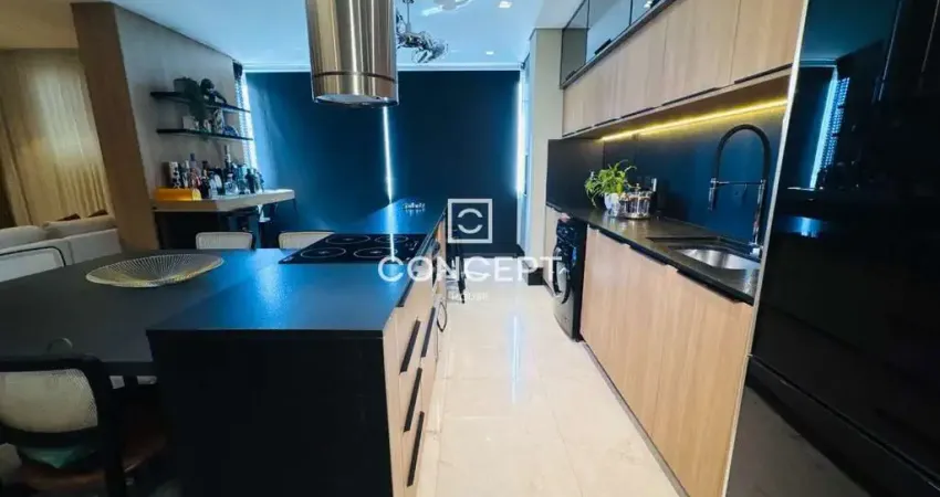 ambientes totalmente integrados: sala de estar, sala de jantar, cozinha e sacada gourmet com churrasqueira, proporcionando um espaço perfeito para receber amigos e família.