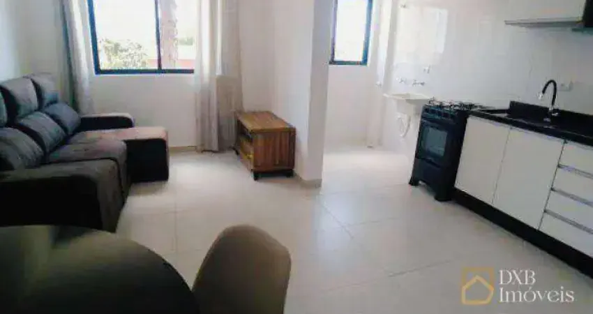 Apartamento com 1 dormitório sendo 1 suite, 37m² de área privativa. Mobiliado com armários no quarto, cozinha, e banheiro, mesa, sofá, e eletrodomésticos na cozinha, maquina de lavar roupa, conta com 1 vaga descoberta.