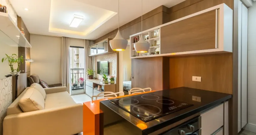 Apartamento 100% mobiliado e decorado no quarto andar para locação em excelente localização no bairro Portão, a 220m do Terminal do Portão e a 450m do Shopping Palladium, região completa com toda infraestrutura que o bairro oferece. O imóvel possui 32m², sendo sala integrada com a cozinha, 1 quarto e 1 banheiro. Possui 1 vaga de garagem coberta.