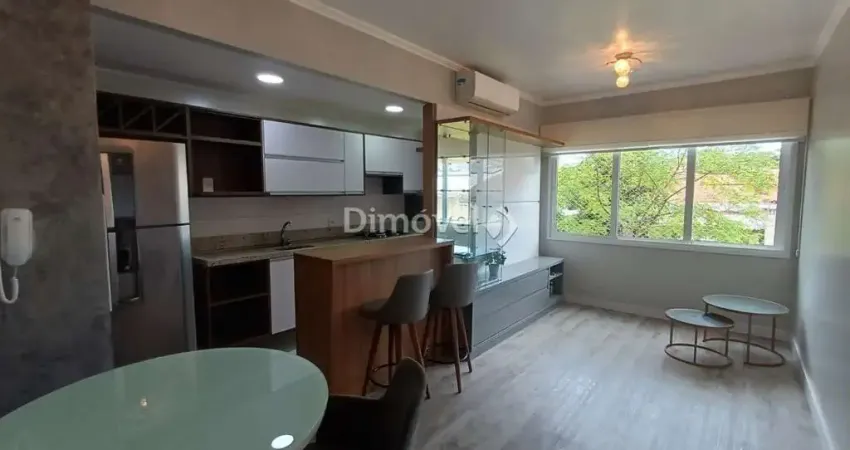 Apartamento mobiliado de 2 dormitórios transformado em 1 e 1 vaga no bairro Cristal, zona sul de Porto Alegre, RS.