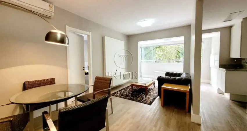 Belíssimo apartamento totalmente mobiliado, composto de um dormitório com suíte, living para dois ambientes bem definidos com aberturas grandes possibilitando maior luminosidade, total privacidade e silêncio, vista para o bosque, sacada integrada com churrasqueira, ambiente climatizado, cozinha americana com total integração ao living, montada e equipada, área de serviço integrada com tanque e aquecedor, além de uma vaga de garagem coberta.