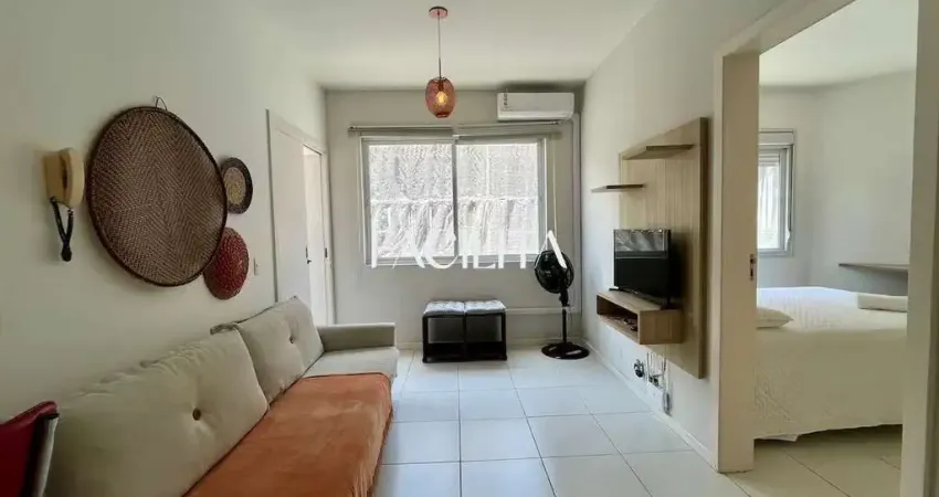 Apartamento de 1 quarto na quadra do mar, totalmente mobiliado, com vista lateral para o mar. O imóvel conta com ar-condicionado no quarto e na sala, sala de estar integrada à cozinha completa, área de serviço com máquina de lavar, chuveiro a gás e excelente iluminação natural. Possui ainda vaga de garagem e uma sacada com churrasqueira a carvão, ideal para momentos de lazer. OBS: APARTAMENTO DESOCUPA 12/02.