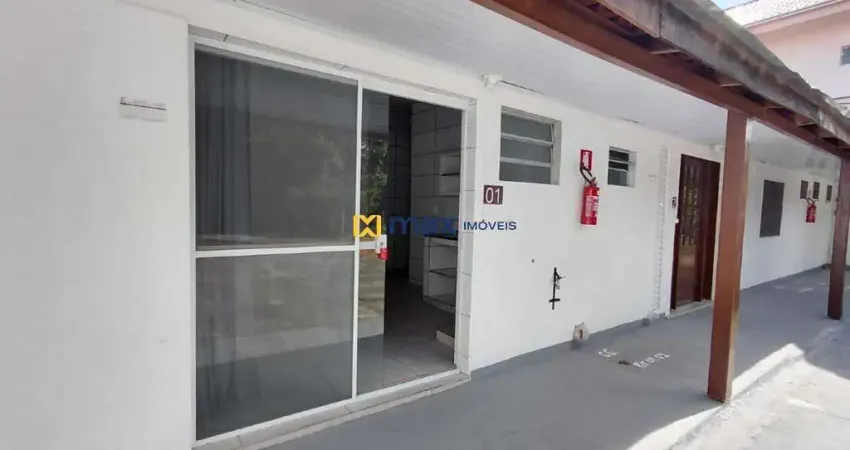 Kit Net contendo 1 quarto cozinha sala e um banheiro em ambiente integrado. Contém uma vaga de estacionamento.