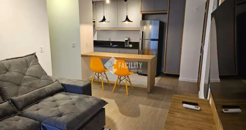Apê em condomínio de alto padrão no Cambuí. Localizado na rua Maria Monteiro, 2 vagas de garagem, ar-condicionado na sala e quarto, rico em móveis planejados em todos os cômodos. Cozinha equipada com cooktop, forno e depurador.
