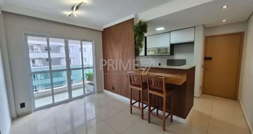 Apartamento para locação no Centro com, sala integrada à sacada, cozinha em estilo americana com armários planejados, área de serviço, 1 suíte com armários e ar-condicionado, e, 1 vaga de garagem no condomínio.