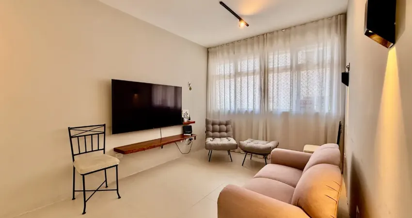 Venha morar no Boqueirão, a 2 quadras da praia, em um apartamento mobiliado com 1 quarto, banheiro social, sala 2 ambientes, cozinha estilo americana com área de serviço.