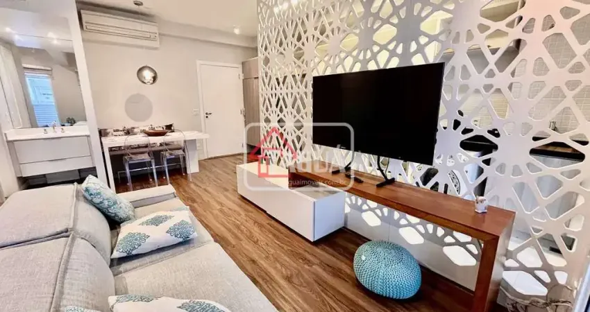 Apartamento de 1 dormitório adaptado para studio, totalmente mobiliado, com vista espetacular para o mar, localizado em um dos melhores bairros de Santos.