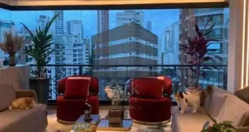 Ficarão no apartamento todos os painéis de madeira, buffet da sala de jantar, bar iluminado, espelhos, estante com nichos iluminados. Cozinha com ilha, armários, cristaleira, torre com micro-ondas e forno elétrico e cooktop. Pia da cozinha com triturador . Área de serviço ampla, com muitas janelas, banheiro de serviço e quarto de serviço com maleiro, prateleiras e armários. Hall social privativo . Ar condicionado no living e nas duas suítes (três no total) . Venezianas e persianas motorizadas . Três vagas de garagem