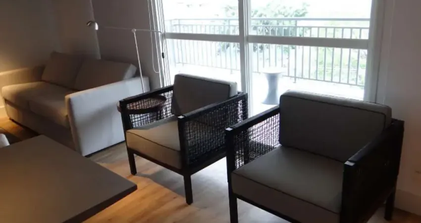 Totalmente integrado com suíte e lavabo, sacada envidraçada, vista para ponte Estaiada (cartão postal de SP). Totalmente mobiliado com cama, eletrodomésticos e ar condicionado em todos ambientes. Conta ainda com cooktop, geladeira, TV, micro-ondas e moveis que garantem aconchego e organização.