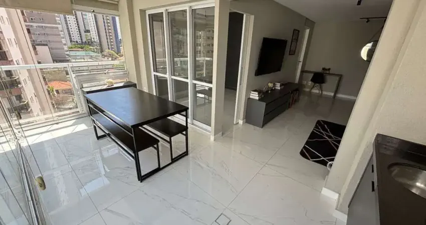 Semi mobiliado, área gourmet, porcelanato, ar condicionado, móveis planejados, mármore, espelhos, varanda fechada vidro e cortina, reforma de alto padrão. Apartamento de frente (não tem barulho da avenida). Condomínio completo (novo), com 2 piscinas (interna e externa), sauna, academia, salão de festas, churrasqueira, etc.