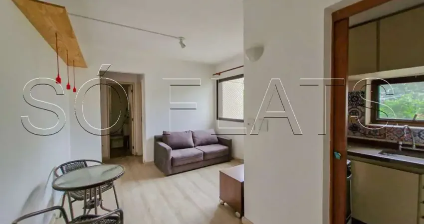 Flat mobiliado com cozinha completa, sala e 1 dormitório.