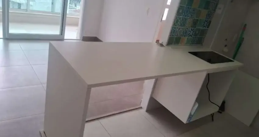 1 suíte planejada com armários embutidos , Ar-condicionado - Sala ampla para dois ambientes com sacada integrada - Cozinha americana moderna, com cooktop e armários embutidos