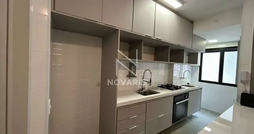 Apartamento com 45m² 1 dormitório com armário, sala com sacada, 1 banheiro social, cozinha americana com armário, 1 vaga.