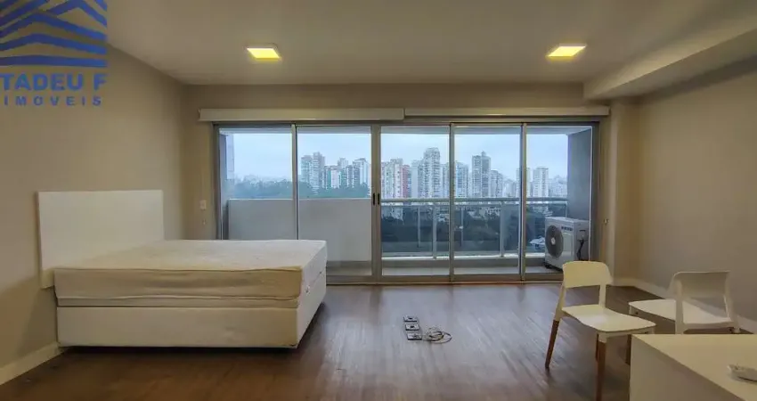Studio 46 m², com 1 dormitório, ar condicionado, living para 2 ambientes, varanda com vista livre, cozinha equipada com cooktop, forno e geladeira, banheiro social e 1 vaga de garagem.