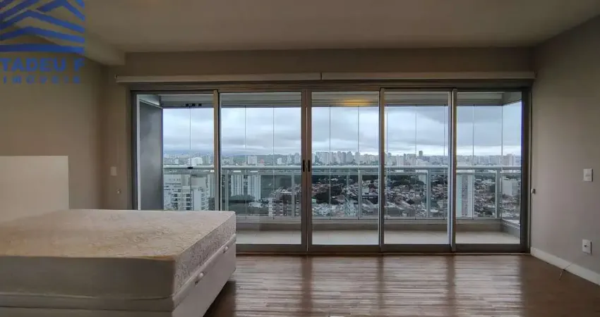Studio 59 m², com 1 dormitório, ar condicionado, living para 2 ambientes, varanda envidraçada com vista livre, lavabo, cozinha equipada com cooktop, forno e geladeira, área de serviço com lava e seca, banheiro social e 1 vaga de garagem.
