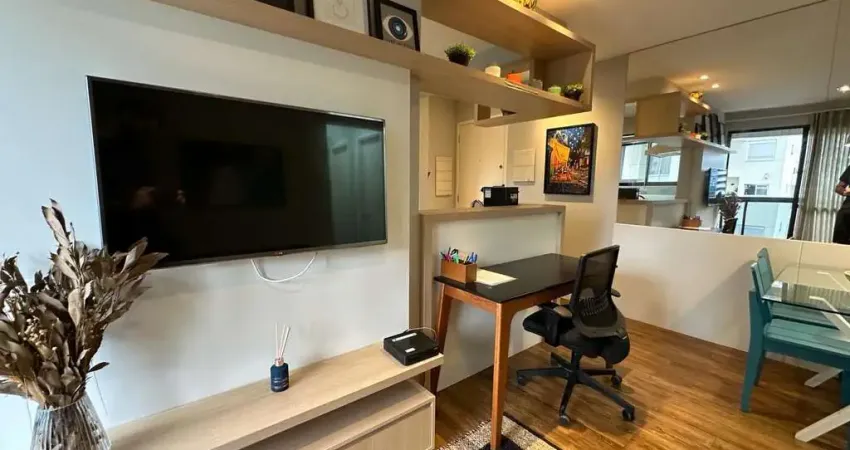 Apartamento com 1 dormitório, totalmente mobiliado, com ar condicionado, mesa de trabalho, 1 vaga de garagem.